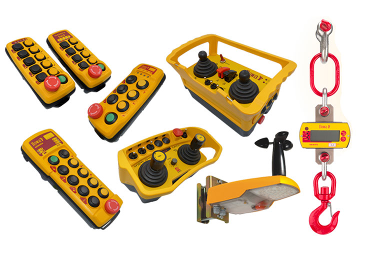 Dispositivos sem fio para operação de guindastes, pontes rolantes, talhas e outros equipamentos pesados. Projetados para máxima segurança e ergonomia: